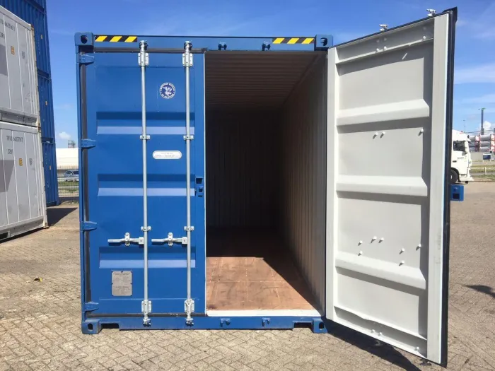 Extra hoher Container mit 30 cm mehr Innenhöhe – ideal für trockene Lagerung und Transport. CSC-zertifiziert, mit Sperrholzboden, Belüftung, Lockbox und Gabelstaplertaschen. In RAL-Farbe nach Wahl erhältlich.
