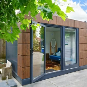 Das Model Helsinki Es ist eine moderne und vielseitige Lösung, ideal für verschiedene Anwendungen, die wie ein Büro, einen Garten oder eine Wohneinheit aussieht. Dieser 4×3 Meter große Inhalt zeichnet sich durch seine moderne Ästhetik und Funktionalität aus.
