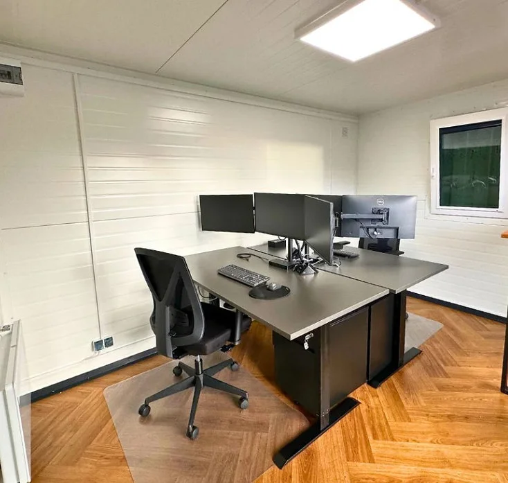Das Modell Helsinki. Es ist eine moderne und vielseitige Lösung, ideal für verschiedene Anwendungen, die wie ein Büro, einen Garten oder eine Wohneinheit aussieht. Dieser 4×3 Meter große Inhalt zeichnet sich durch seine moderne Ästhetik und Funktionalität aus.